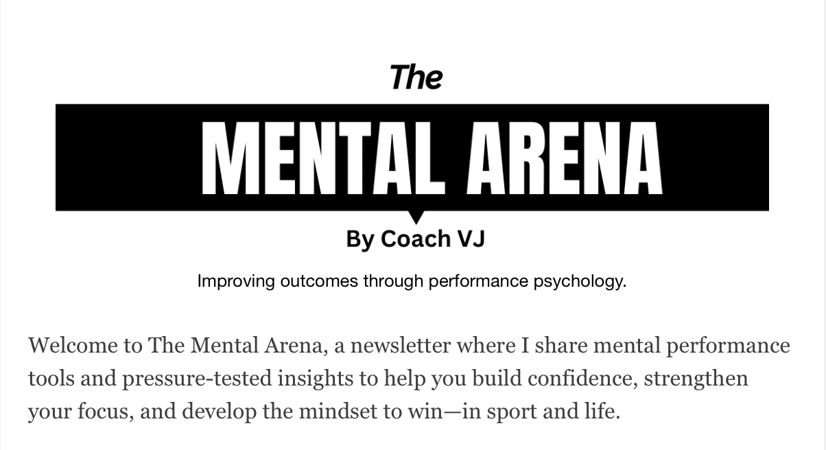 Welcome to The Mental Arena, a newsletter where I share mental performance tools and pressure-tested insights to help you build confidence, strengthen your focus, and develop the mindset to win—in sport and life. Forwarded this email? Sign up here. Focus on What You Can Do read time 4 minutes Coach Kelly Kruger walks toward me. When he’s within “assist” distance, he bounce-passes two basketballs. “VJ, are your arms broken? Are your hands broken? Are your eyes blurry?” “No, Coach.” “Then you...